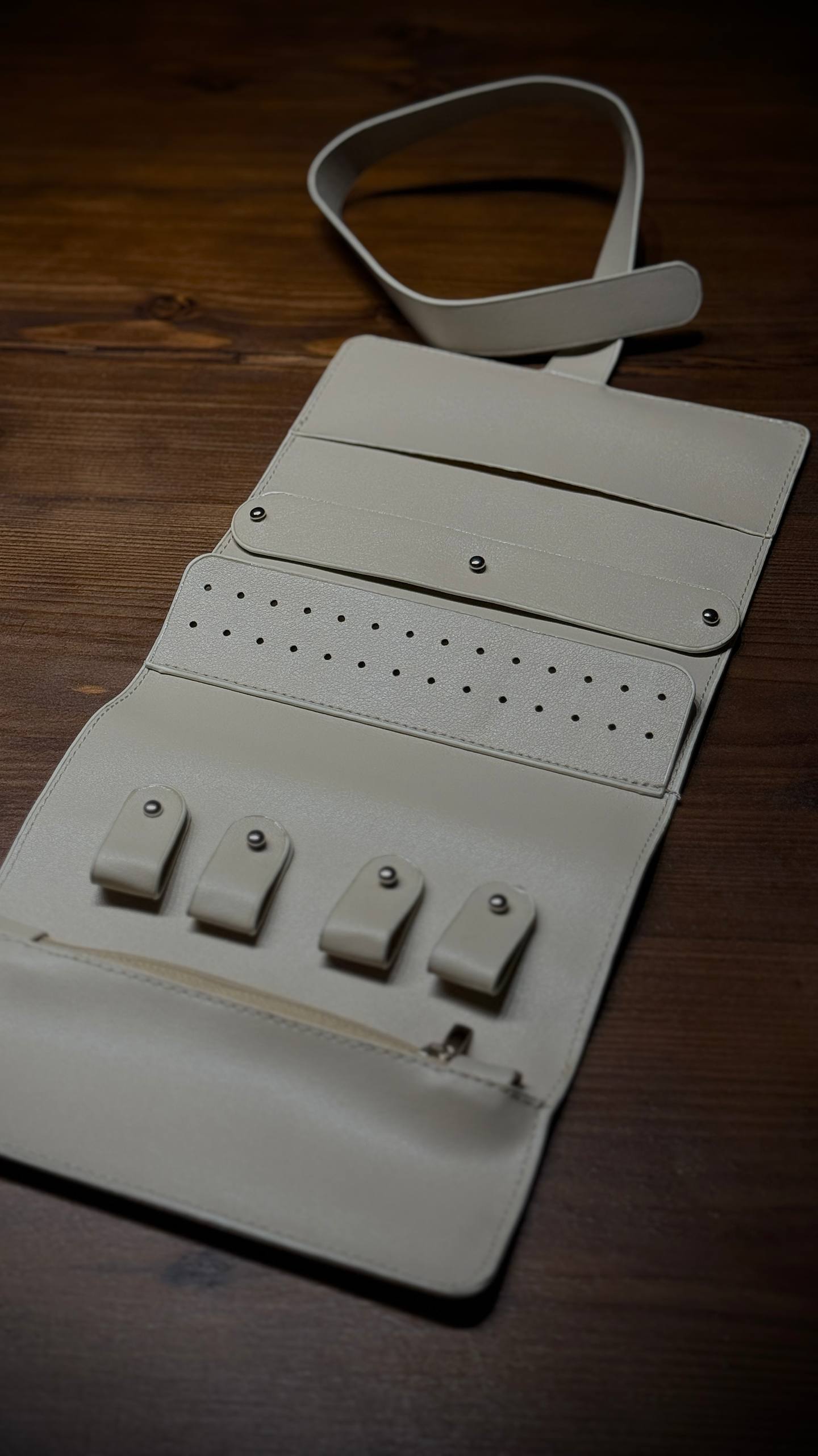 مشخصات اصلی انتخاب رنگ کیف رولت مشکیسبز یشمیقهوهایکرممشخصات فرعیجنس کیف اکسسوری رولتچرم صنعتی وارداتیابعاد کیفدر حالت باز 38*18 سانتی متر - در حالت بسته 18*10 سانتی مترویژگی هافضای مخصوص گوشواره - دستبند - انگشتر - گردنبند و اکسسوری های دیگر